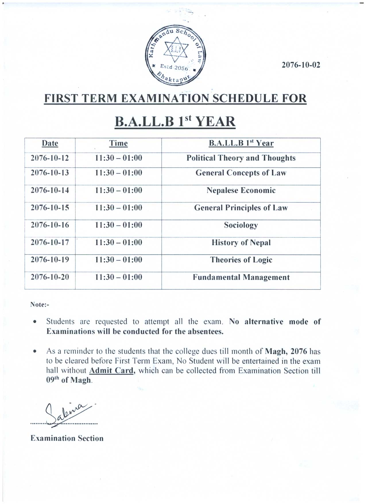 Notice Regarding B.A. LL.B Entrance Examination 2081 Session