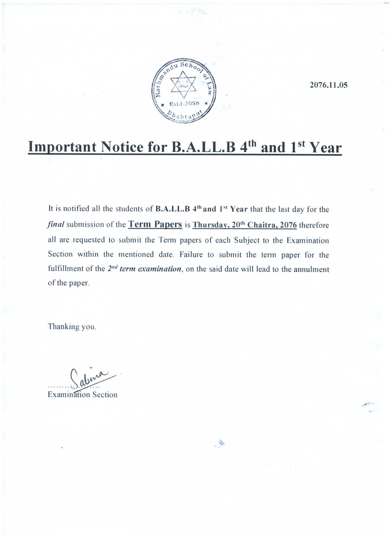 Notice Regarding B.A. LL.B Entrance Examination 2081 Session