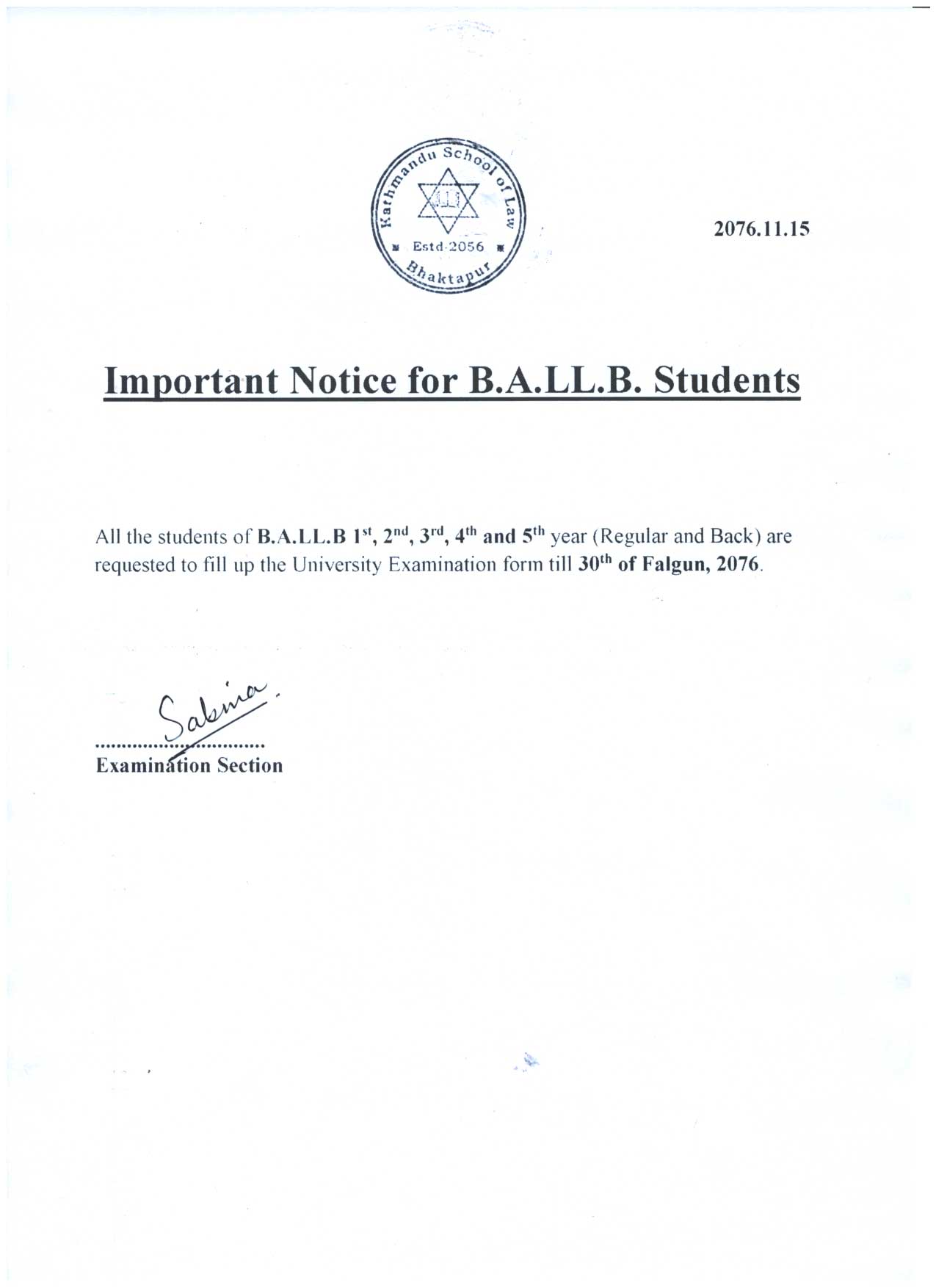 Notice Regarding B.A. LL.B Entrance Examination 2081 Session