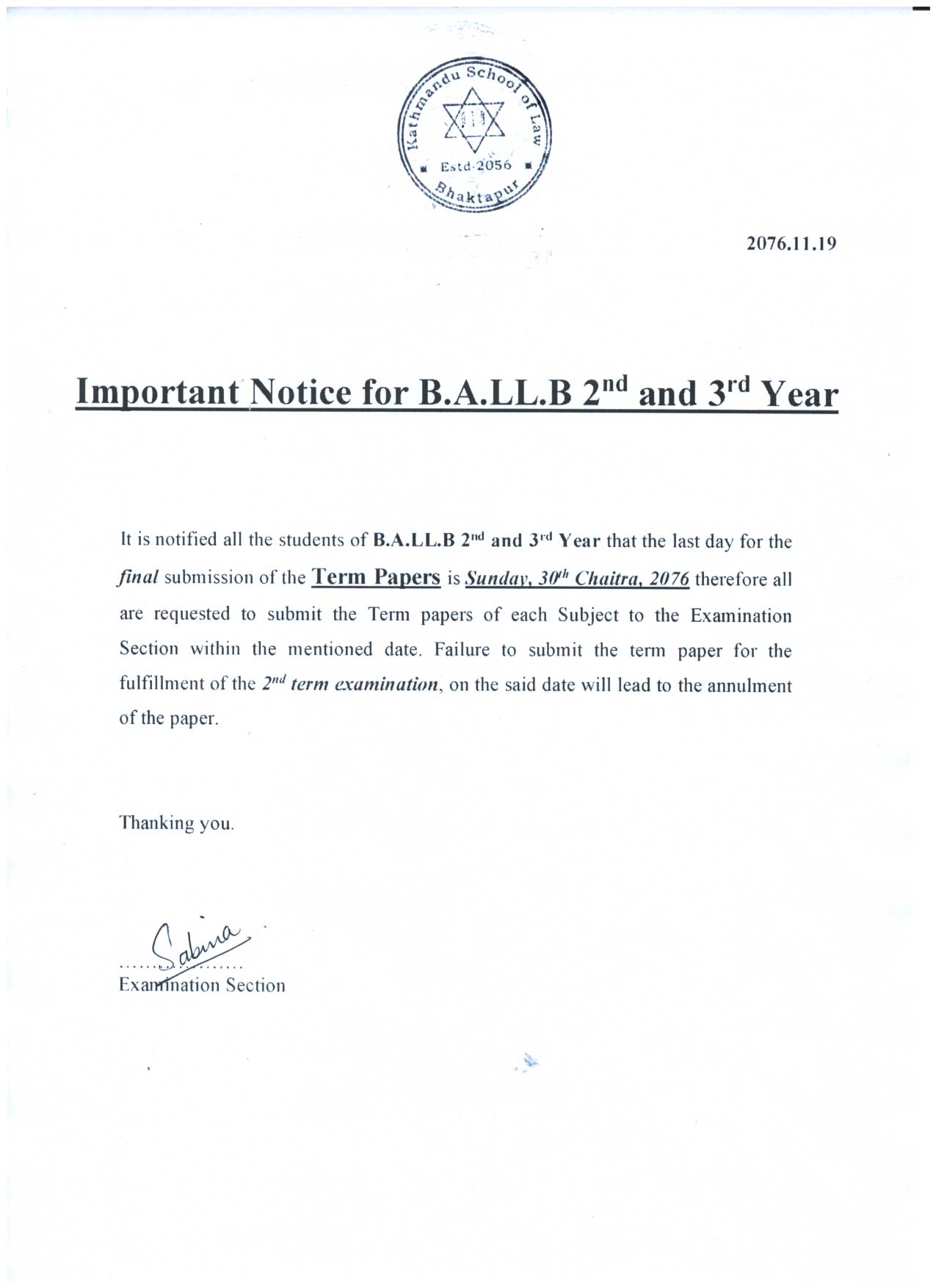 Notice Regarding B.A. LL.B Entrance Examination 2081 Session
