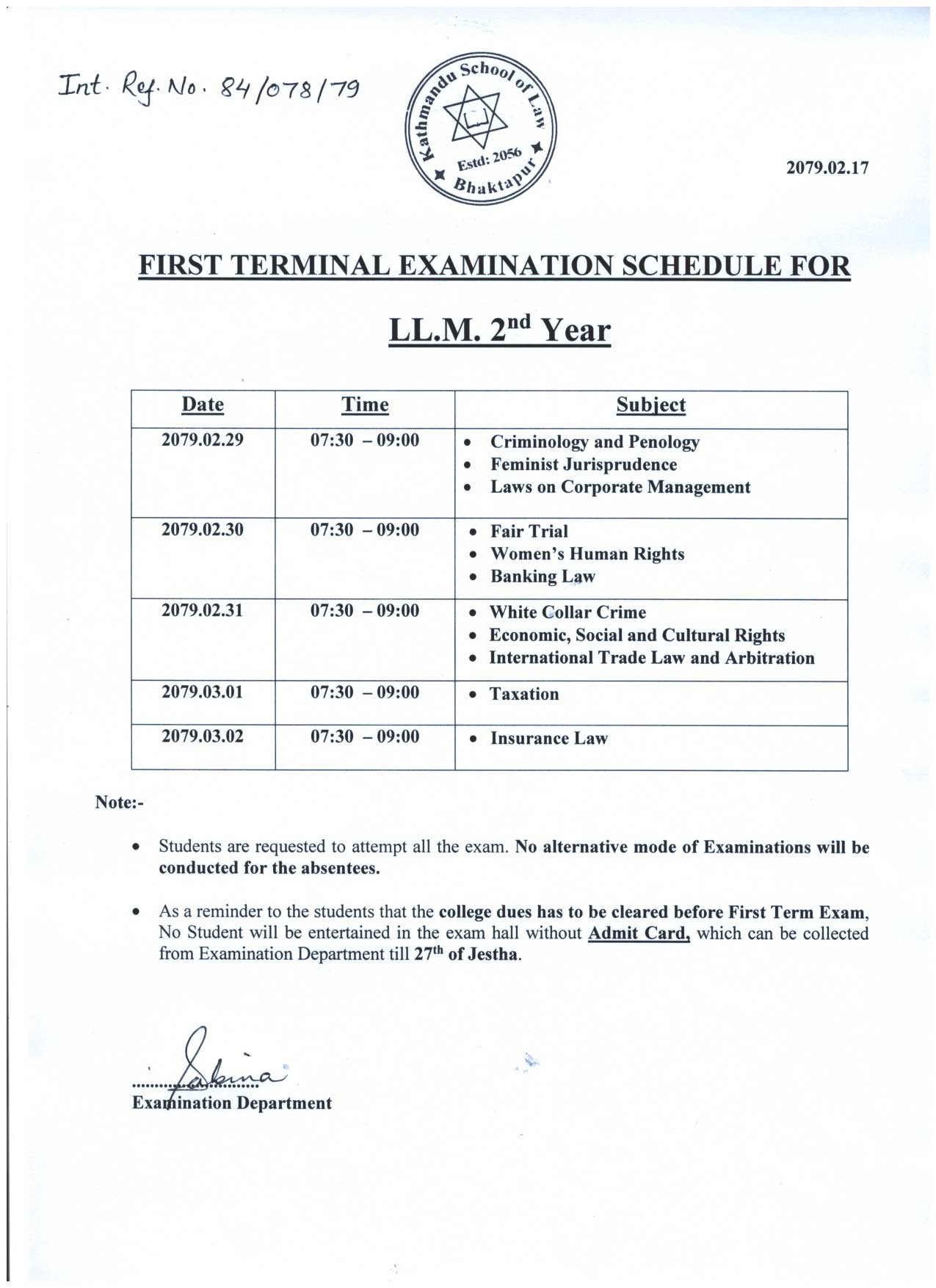 Notice Regarding B.A. LL.B Entrance Examination 2081 Session