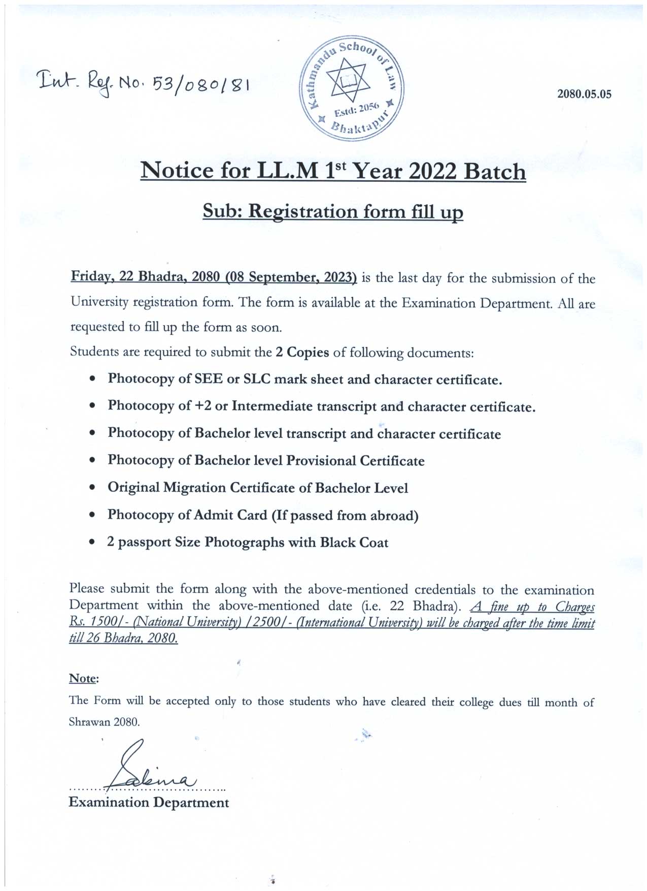 Notice Regarding B.A. LL.B Entrance Examination 2081 Session