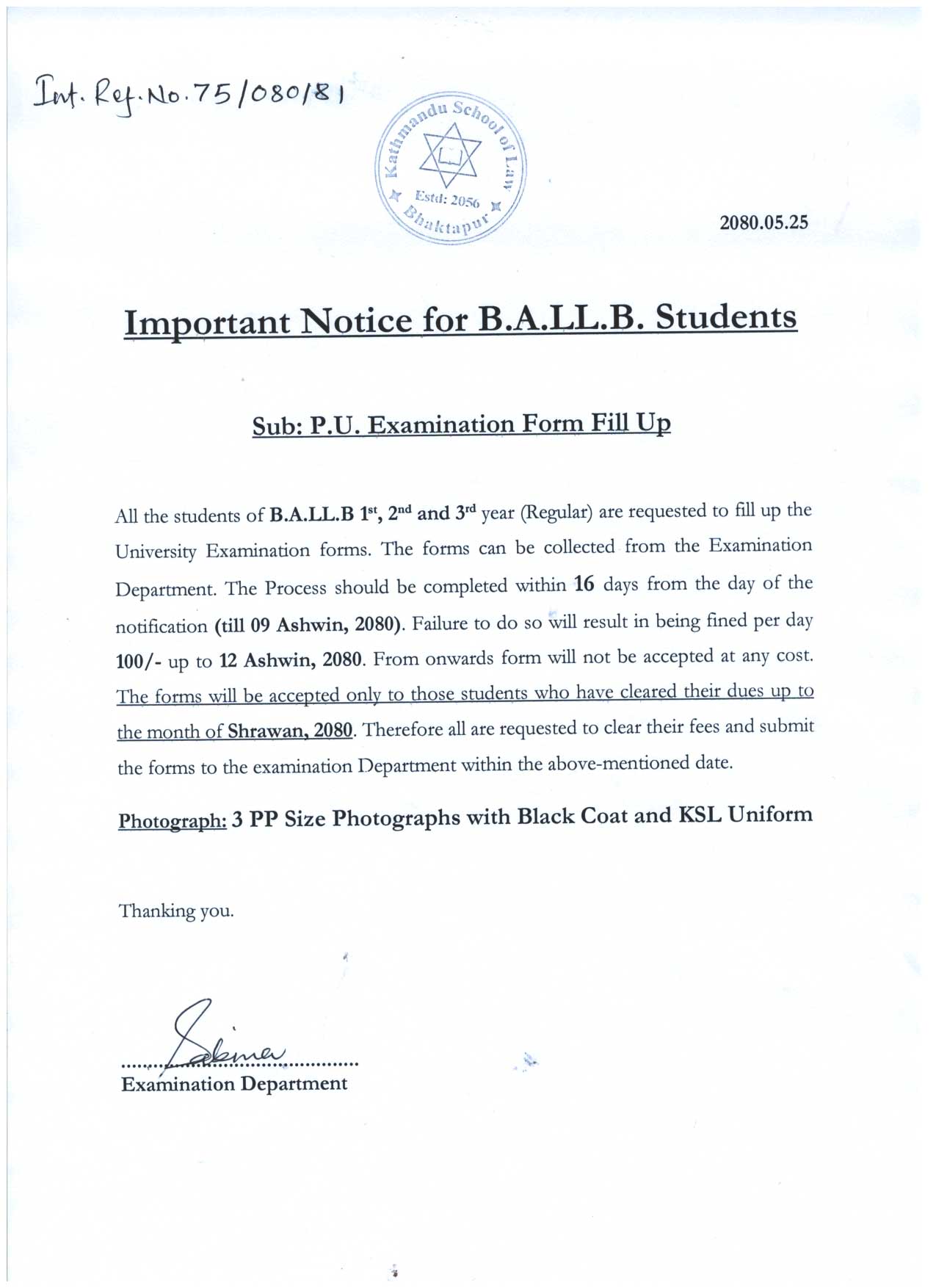 Notice Regarding B.A. LL.B Entrance Examination 2081 Session