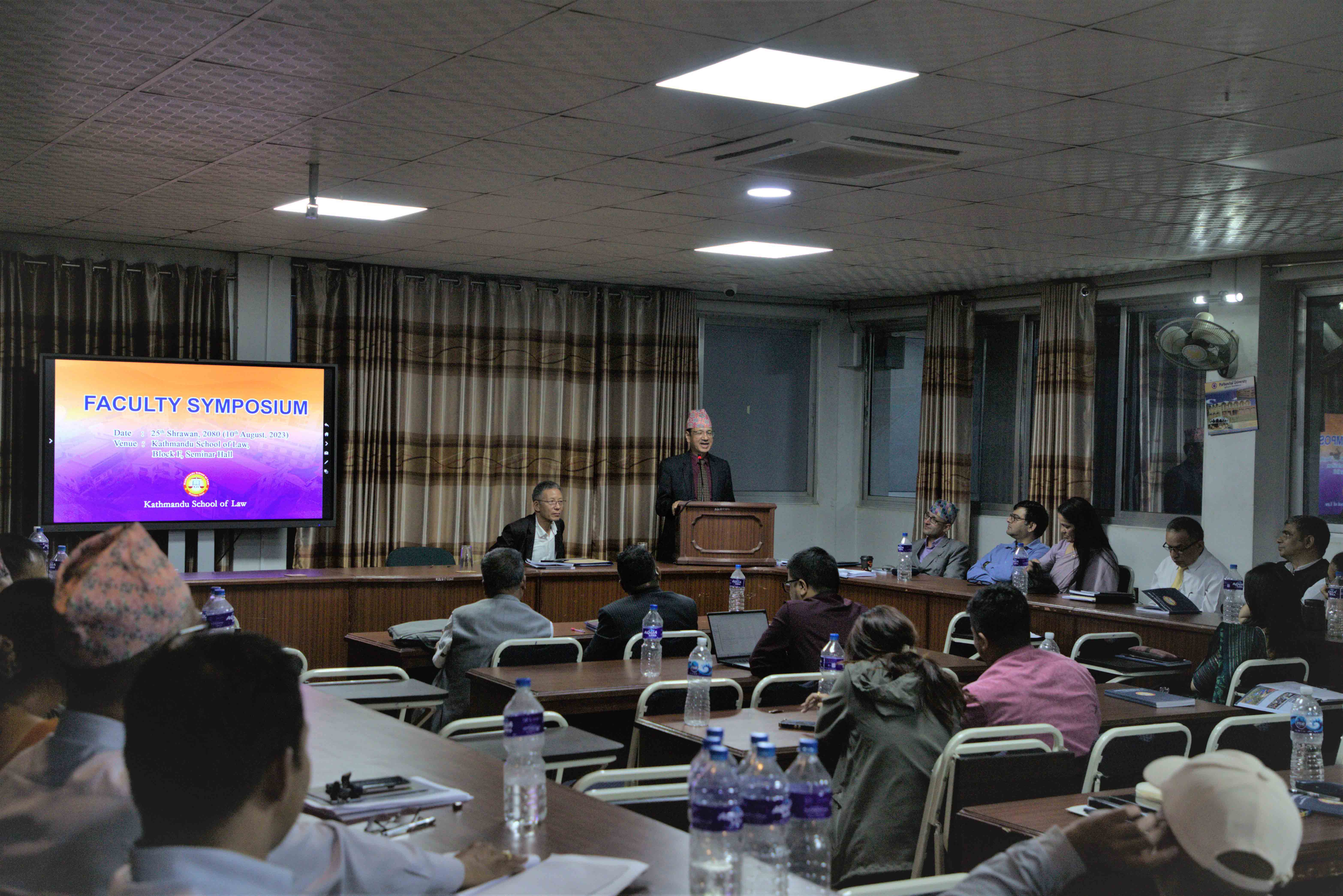 Kathmandu School of Law (KSL) organized the “Faculty Symposium” on the 25th of Shrawan 2080 at its main campus, facilitating a significant platform for scholarly discourse among faculty members and college administrations to review its last academic session and plan the year ahead. The primary objective of this symposium was to facilitate the exchange of pedagogical experiences and departmental insights from the previous academic year, thereby fostering a climate of mutual learning and academic advancement. The symposium brought together all the college personnel for a day of knowledge-sharing and collaboration to promote mutual understanding and growth.