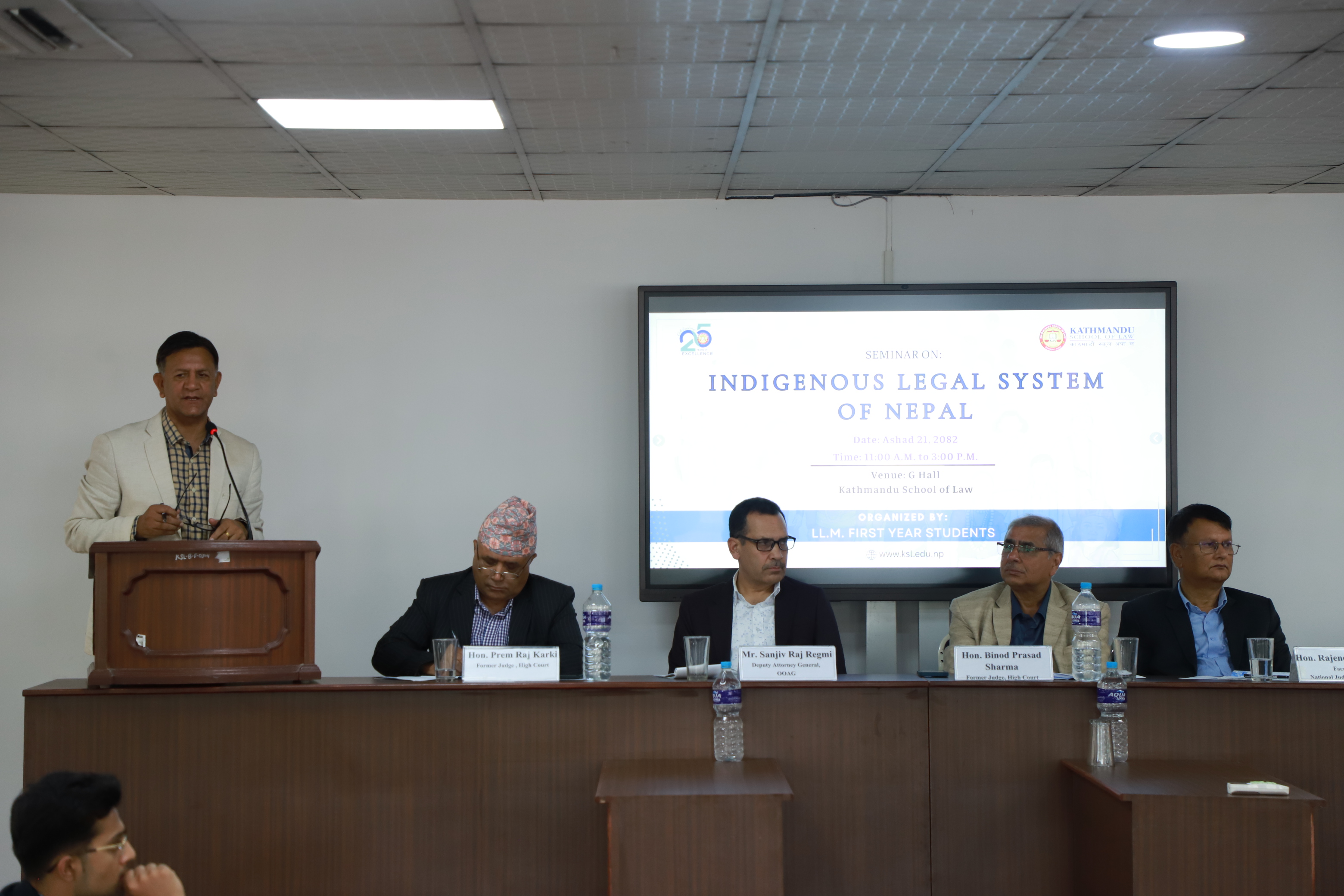 A Seminar on the Indigenous Legal System of Nepal was successfully held on Ashad 21, 2082, organized by the LL.M. First Year students with the objective of deeply exploring our indigenous knowledge and justice system and its relevance within contemporary legal structures.