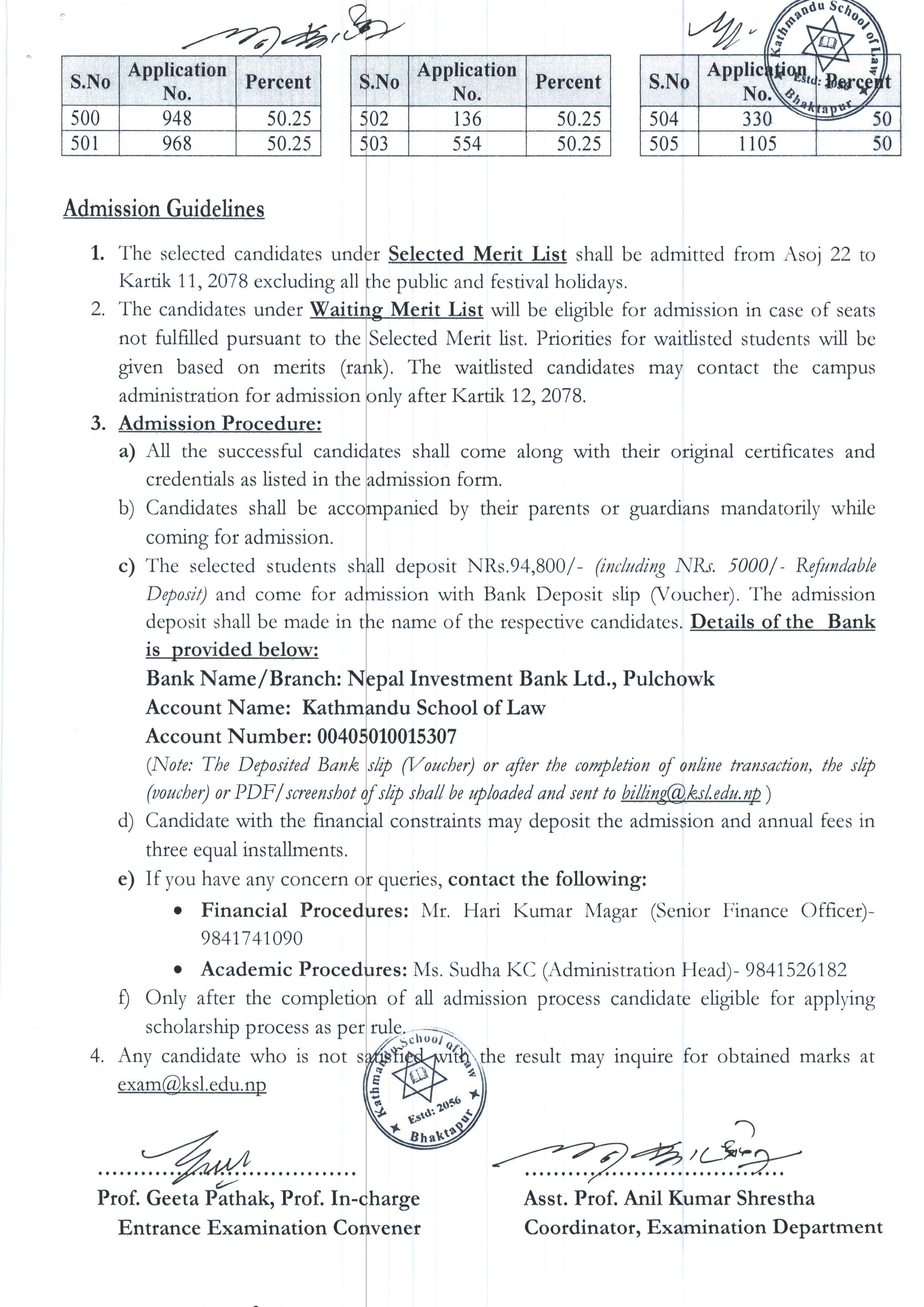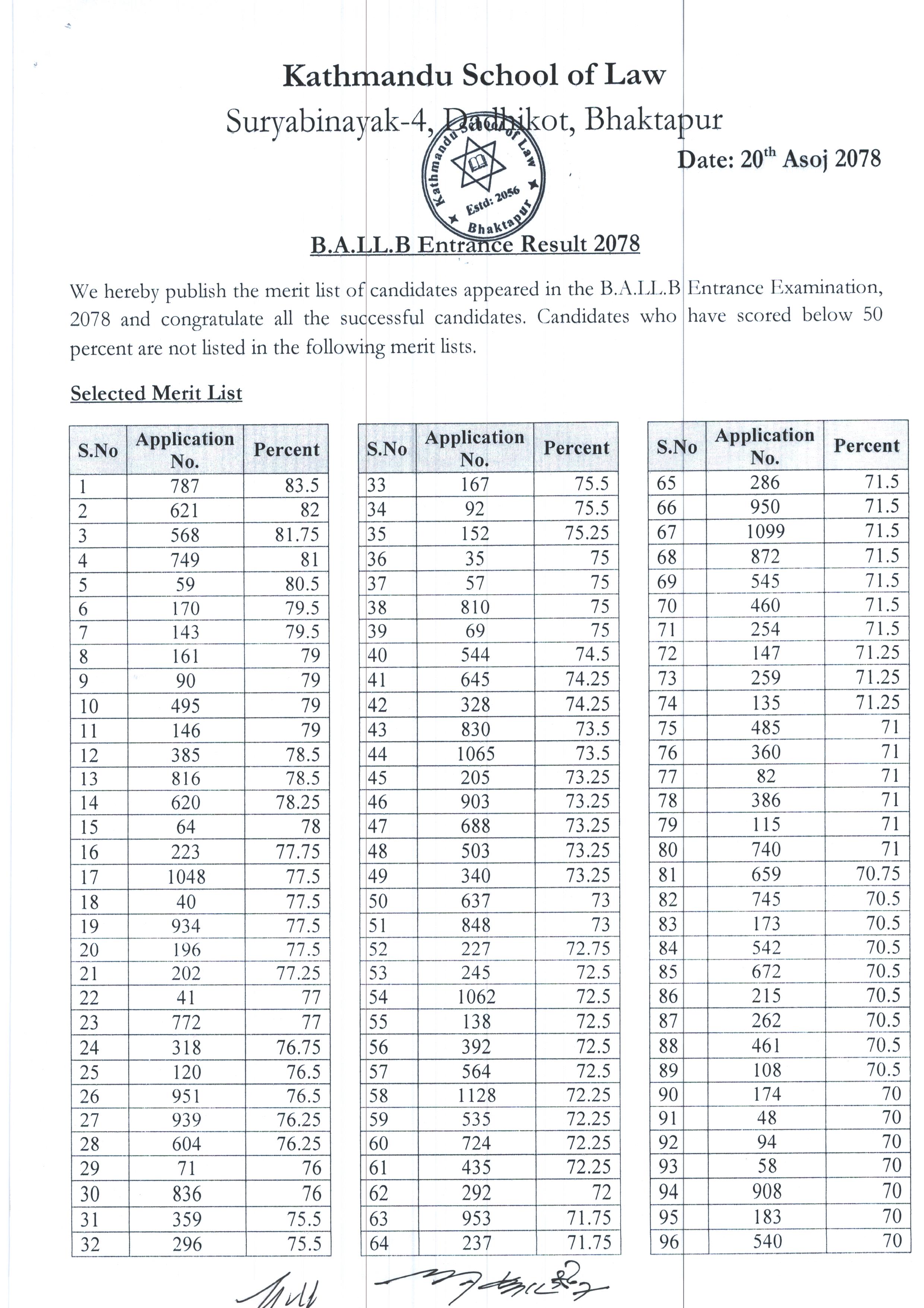 We hereby publish the merit list of candidates in B.A.LL.B Entrance Examination 2078 and congratulate all the successful candidates.