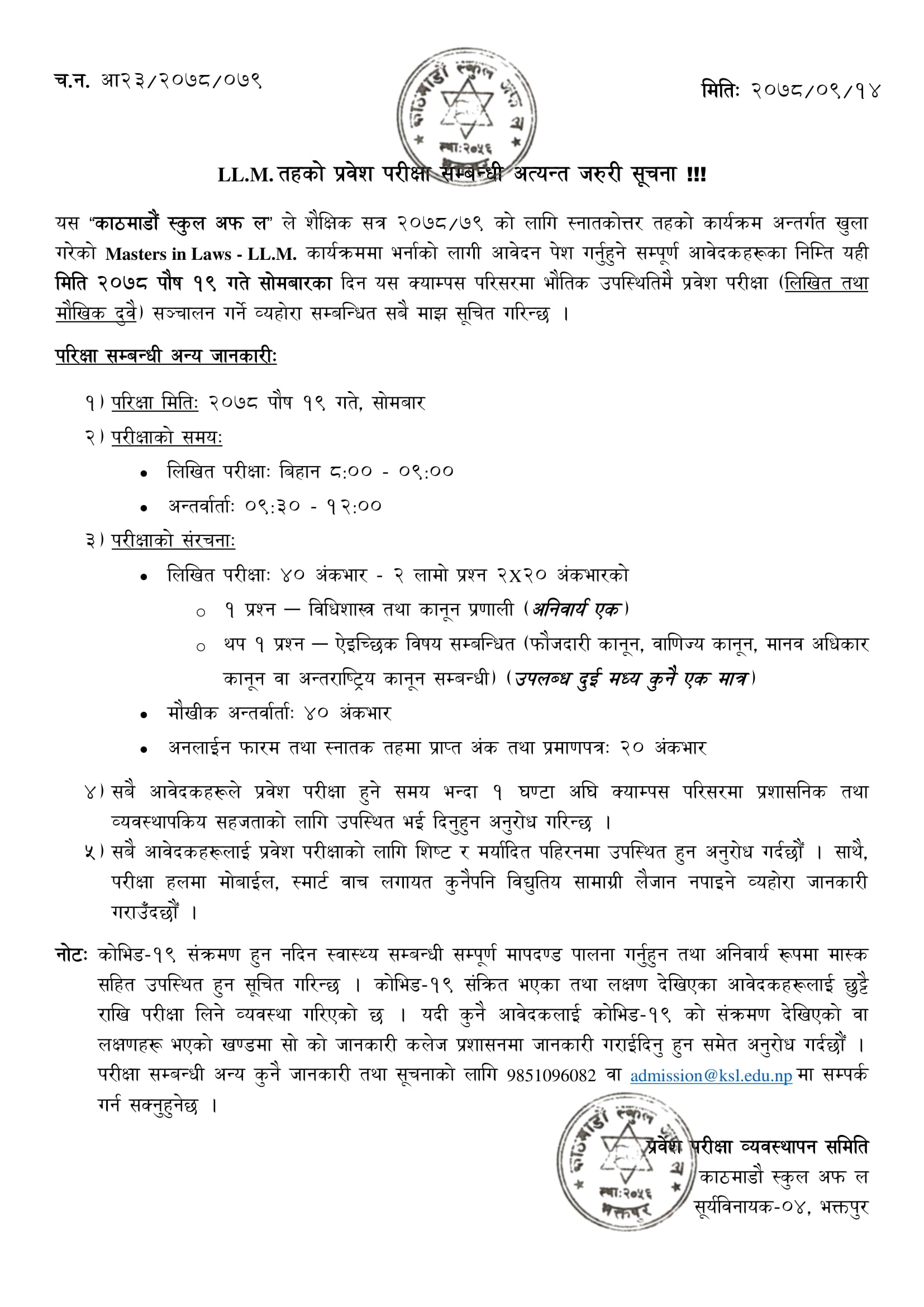 Notice Regarding LLM 2021 Batch Entrance Examination