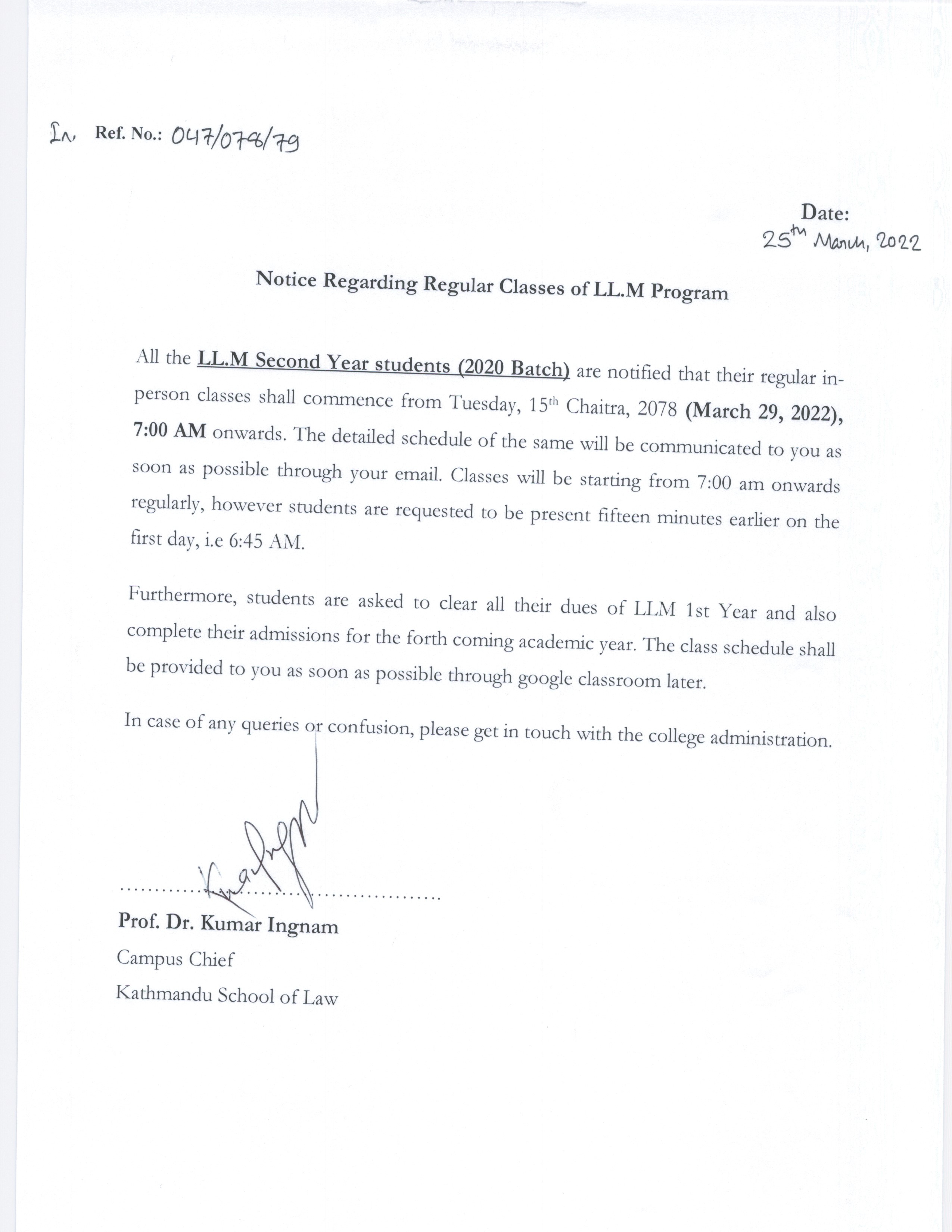 Notice for LLM 2077/78 Batch reg