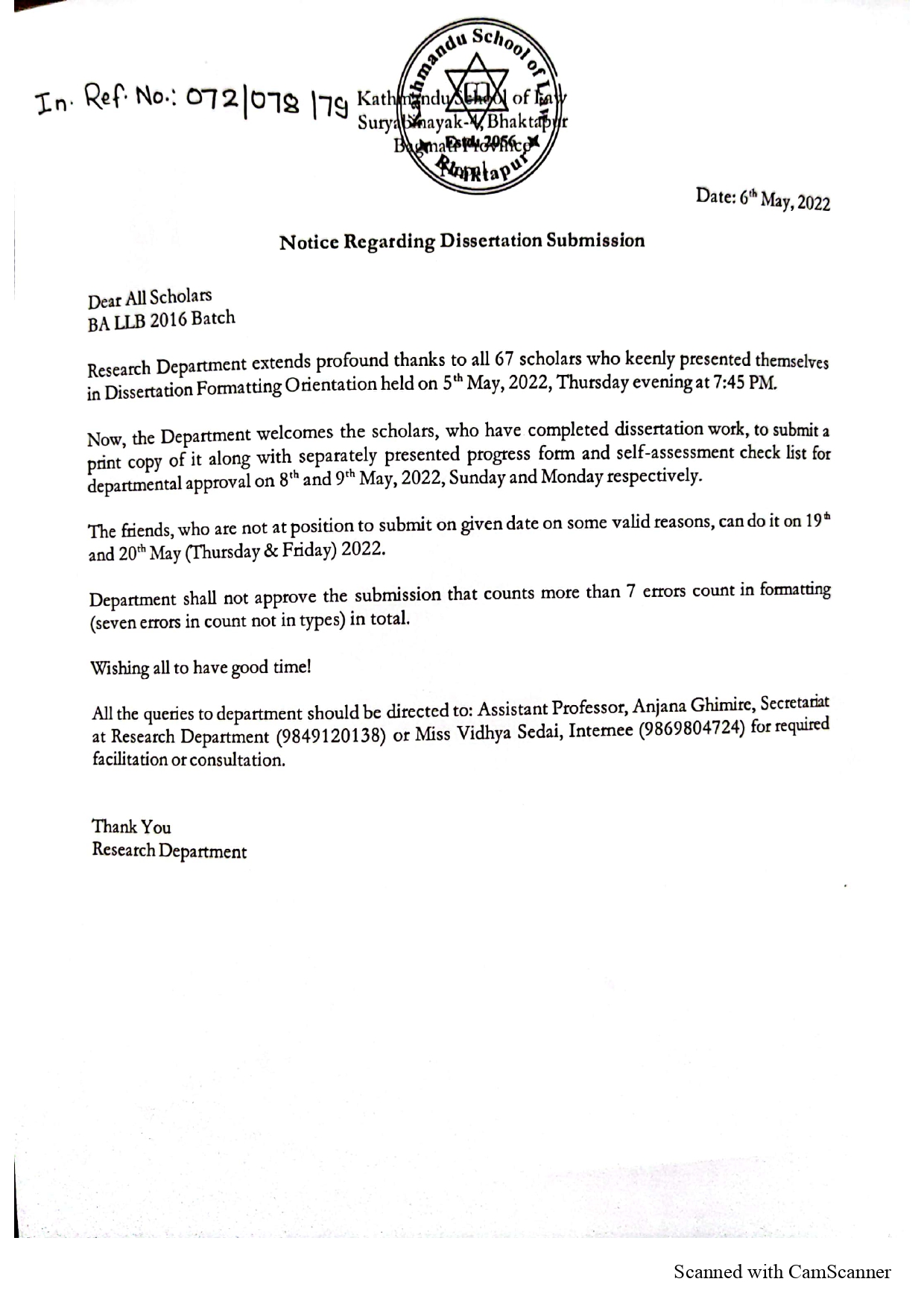 Notice: Regarding LLM Dissertation Submission