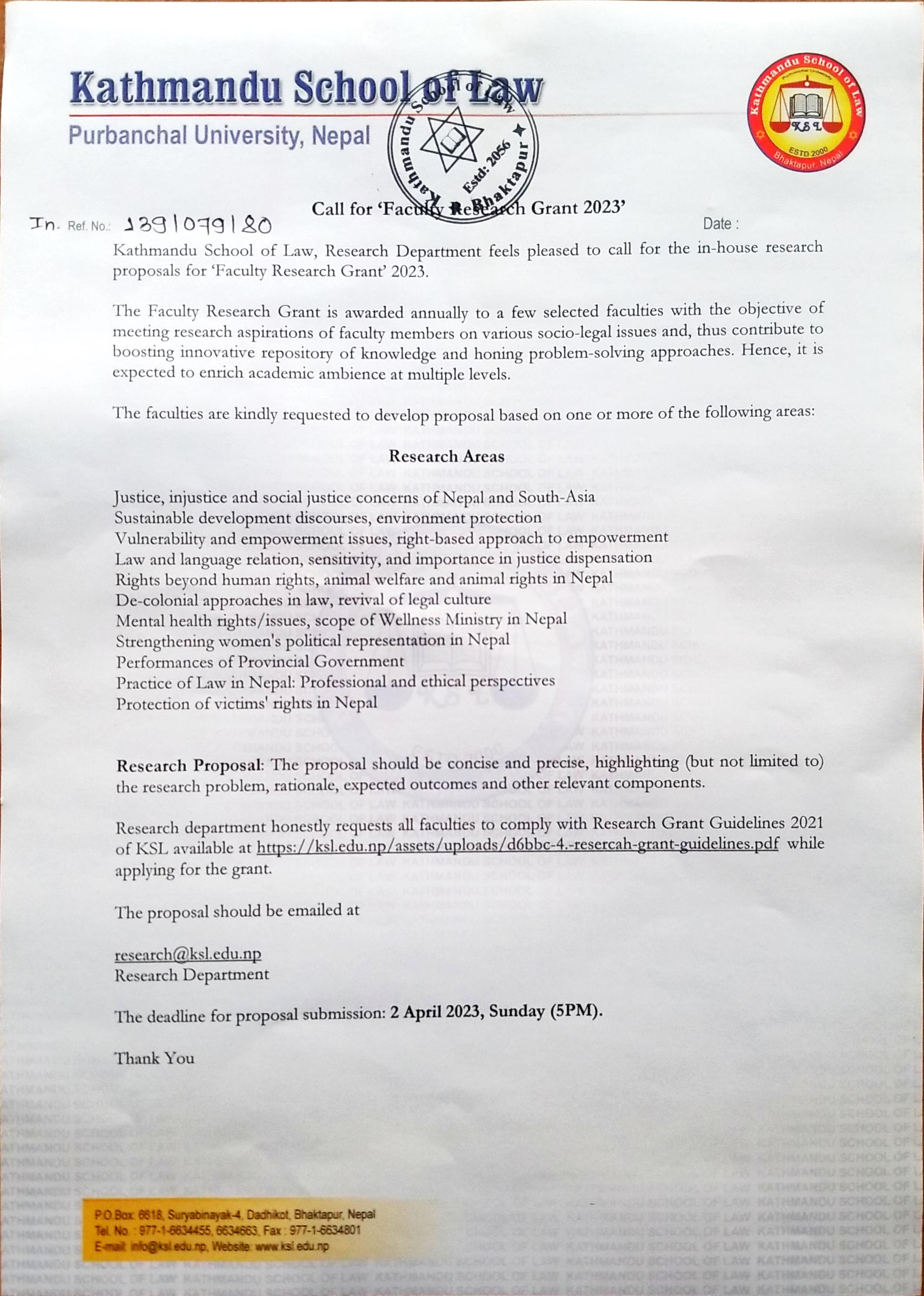 Call for Faculty Research Grant 2023