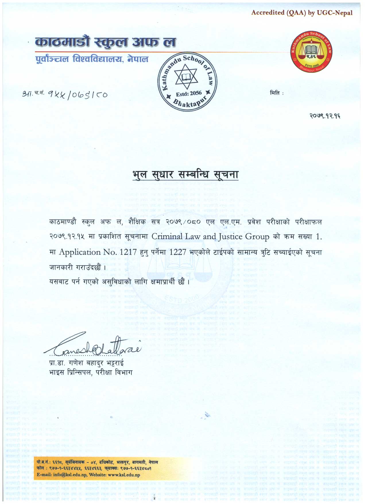 भुल सुधार सम्बन्धि सूचना