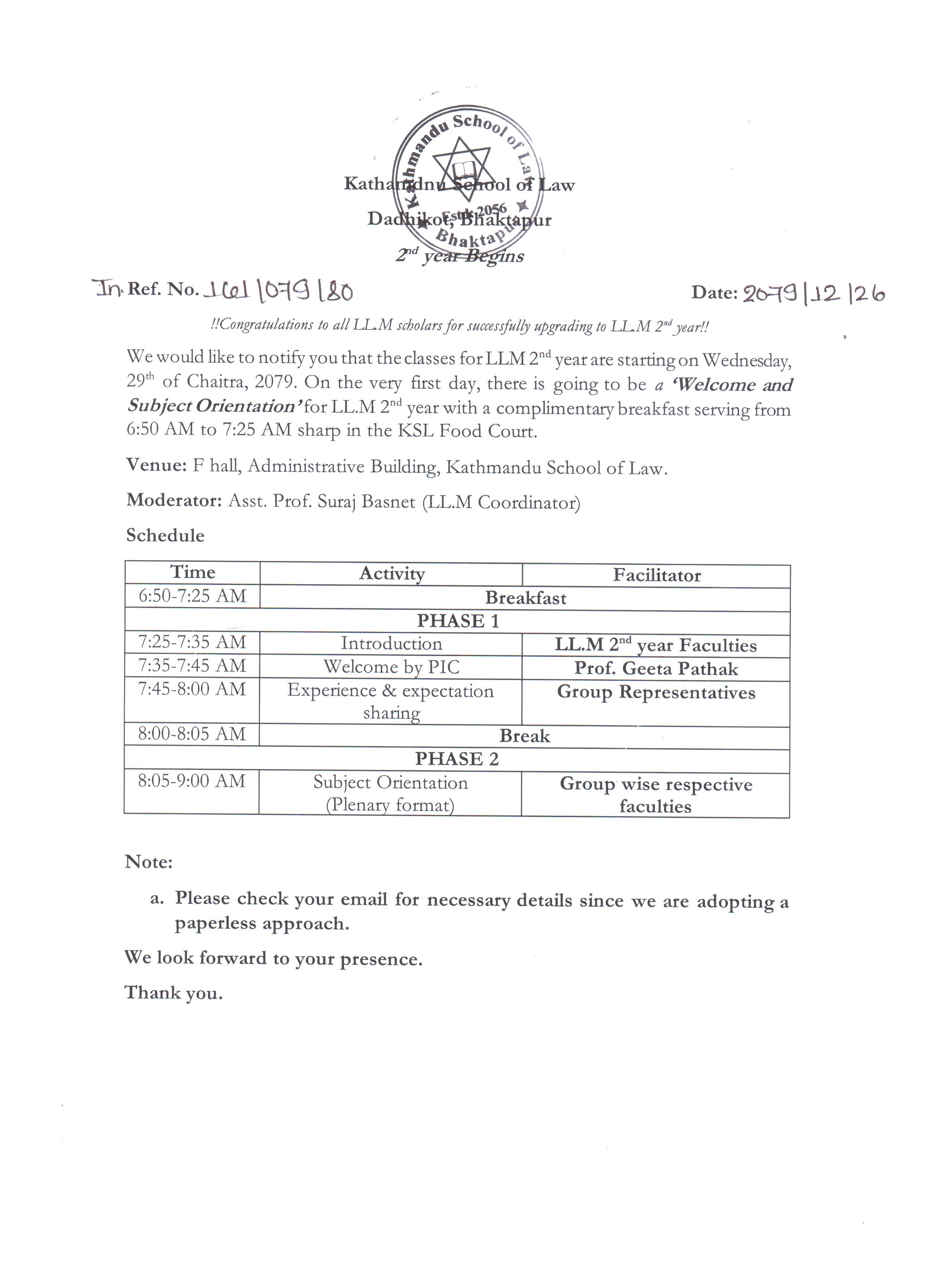 Notice Regarding the Class Commencement of LLM 2nd Year