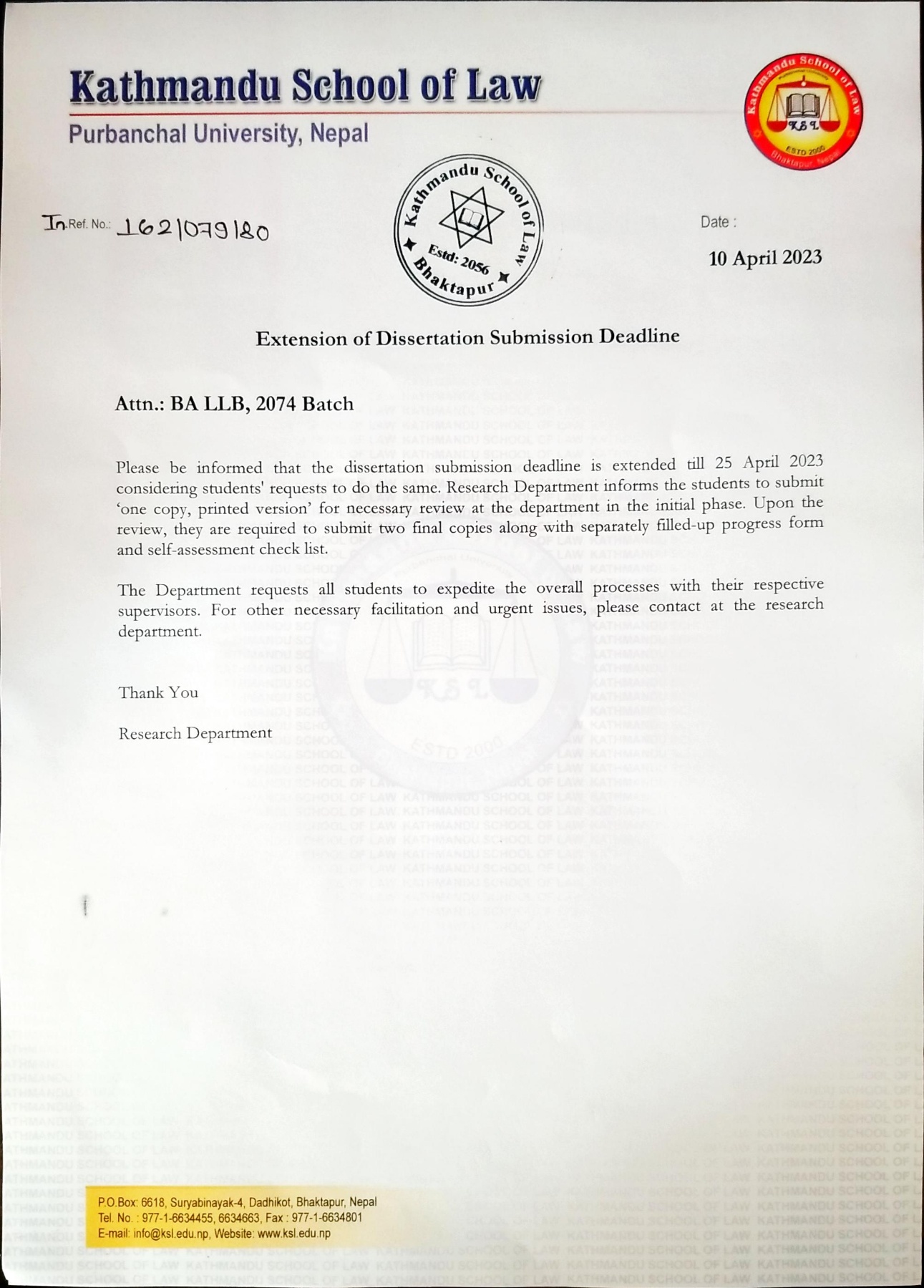 Notice: Extension of Dissertation Submission Deadline