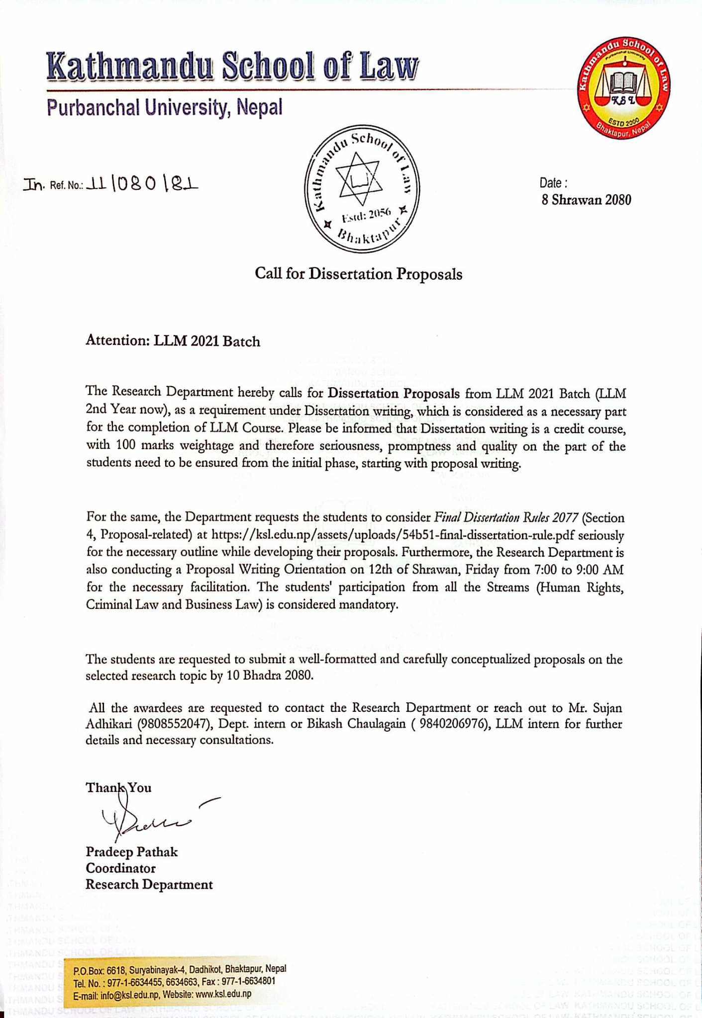 Notice: Dissertation Proposal Evaluation Result, 2082