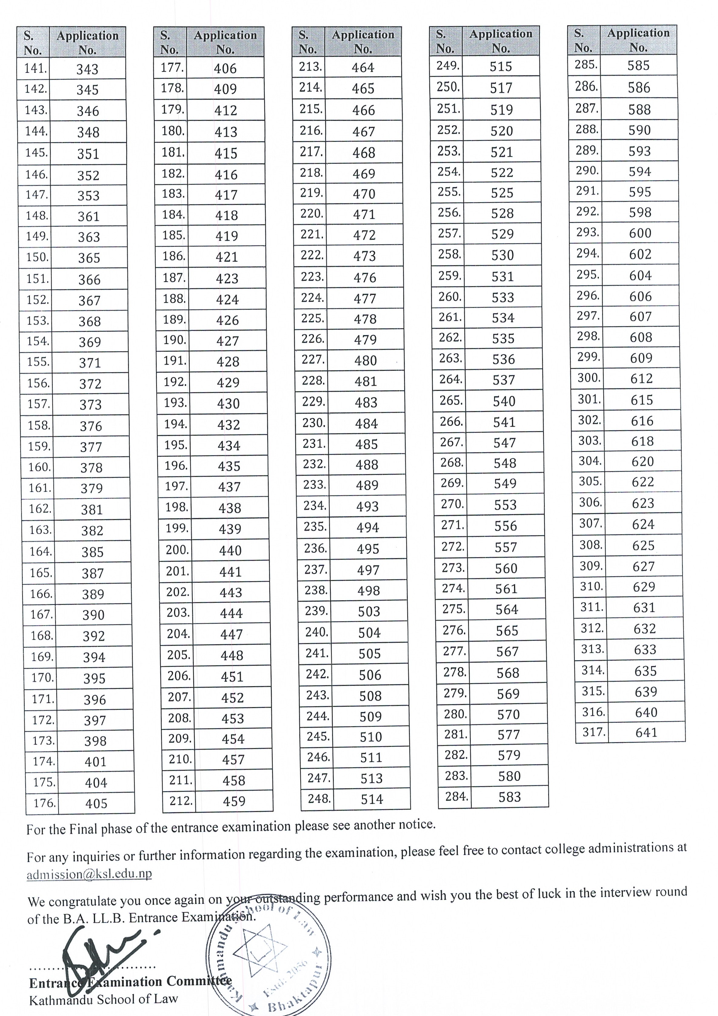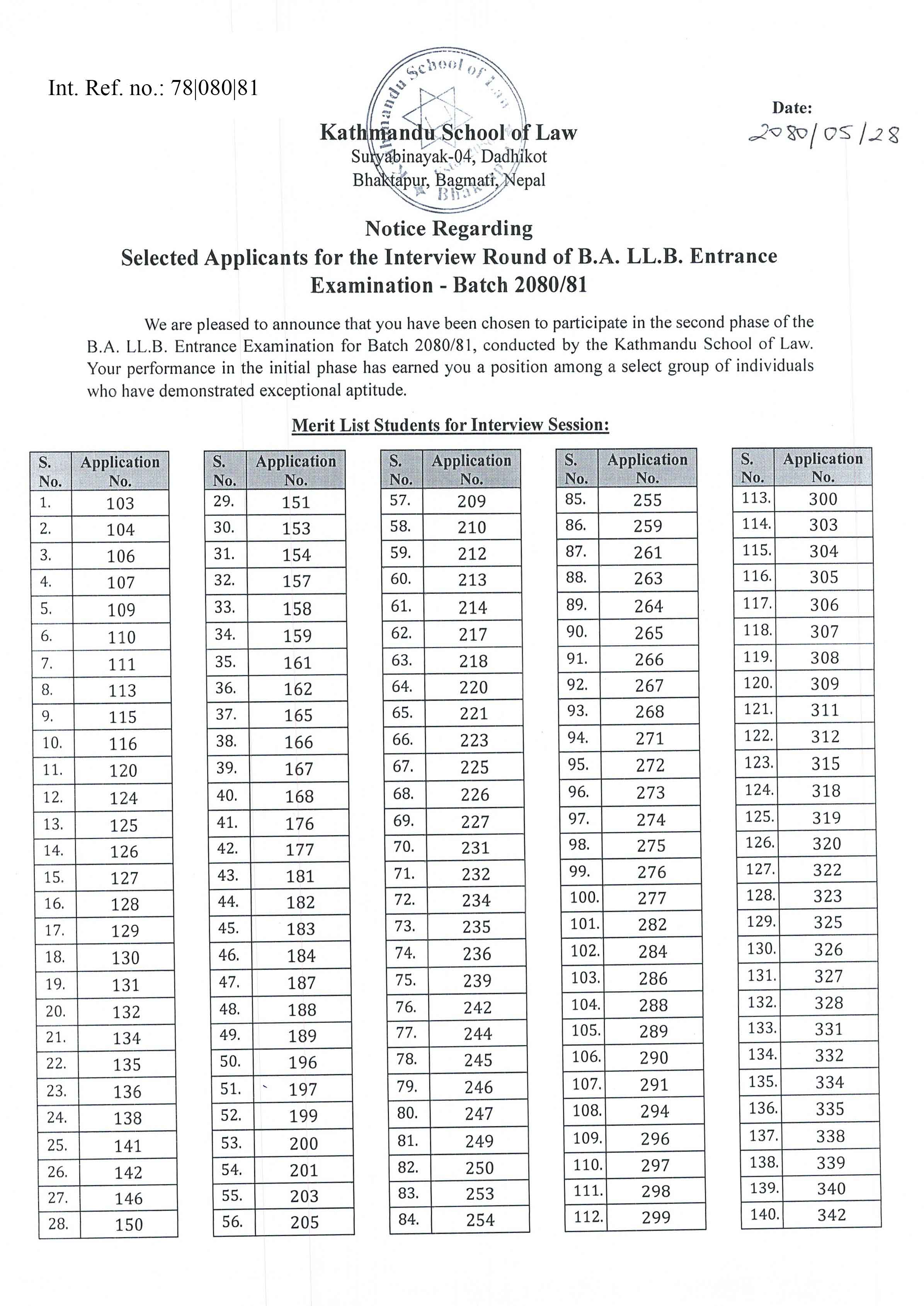 Notice Regarding Selected Applicants for the Interview Round of B.A. LL.B. Entrance Examination- Batch 2080/81