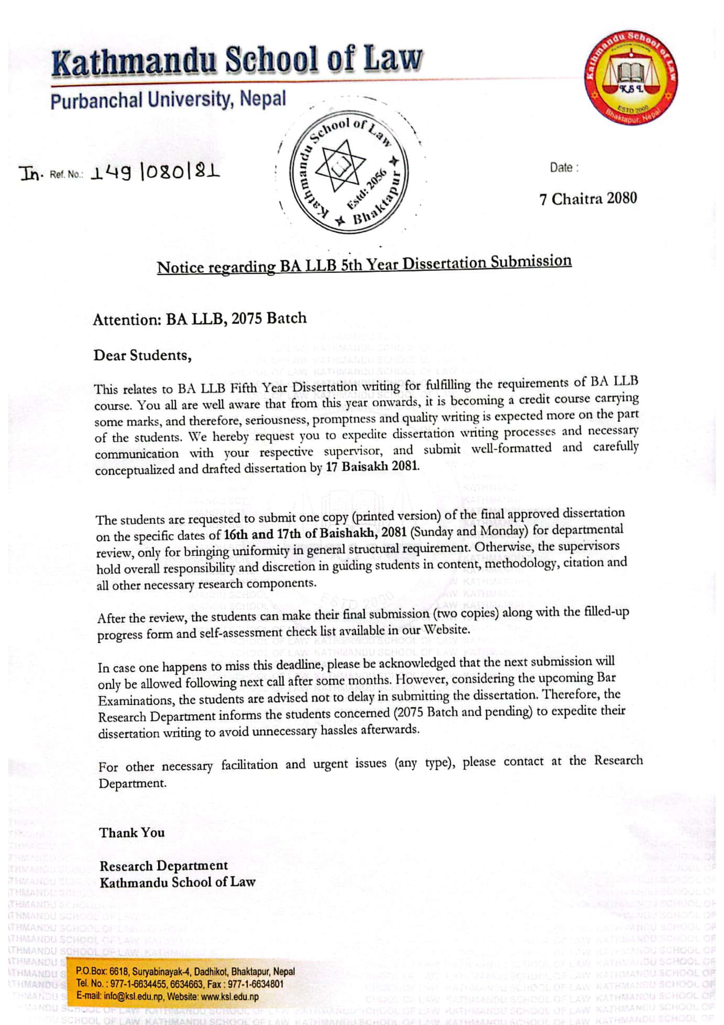 B.A. LL.B. Entrance Examination 2082 result has been published
