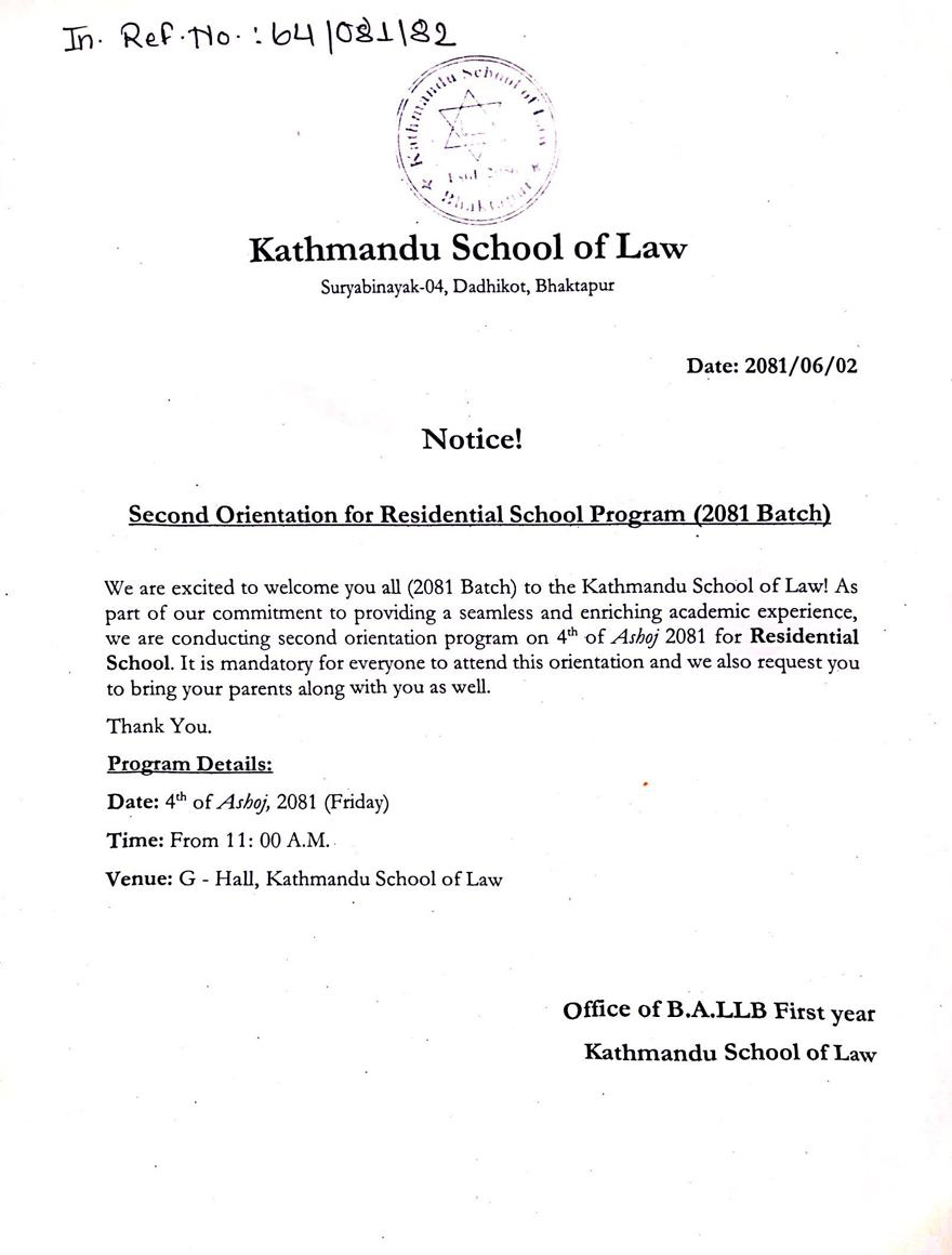 Notice: Second Orientation for Residential School Program (2081 Batch)
