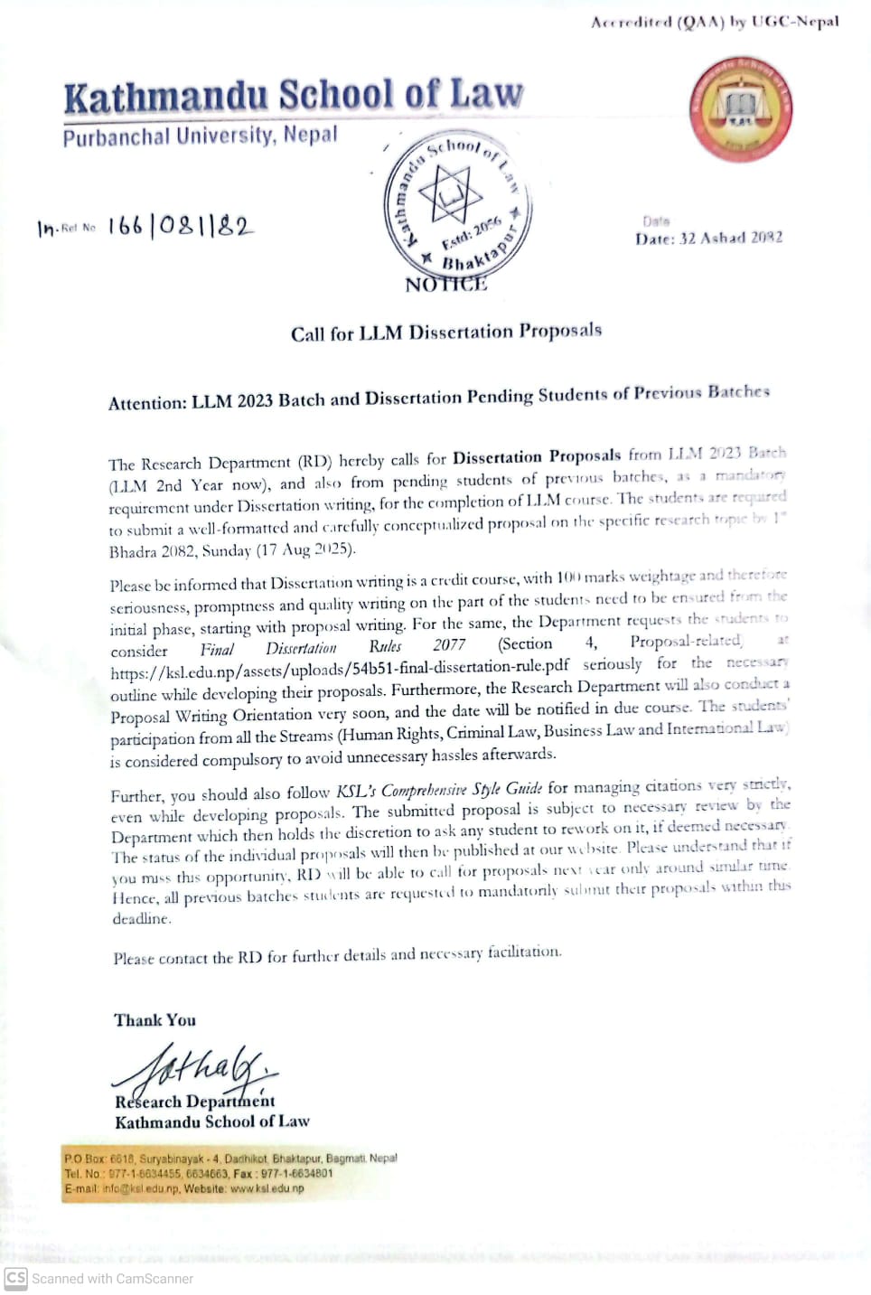 Notice: Dissertation Proposal Evaluation Result, 2082