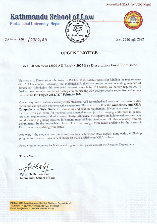 Notice: Regarding LLM Dissertation Submission