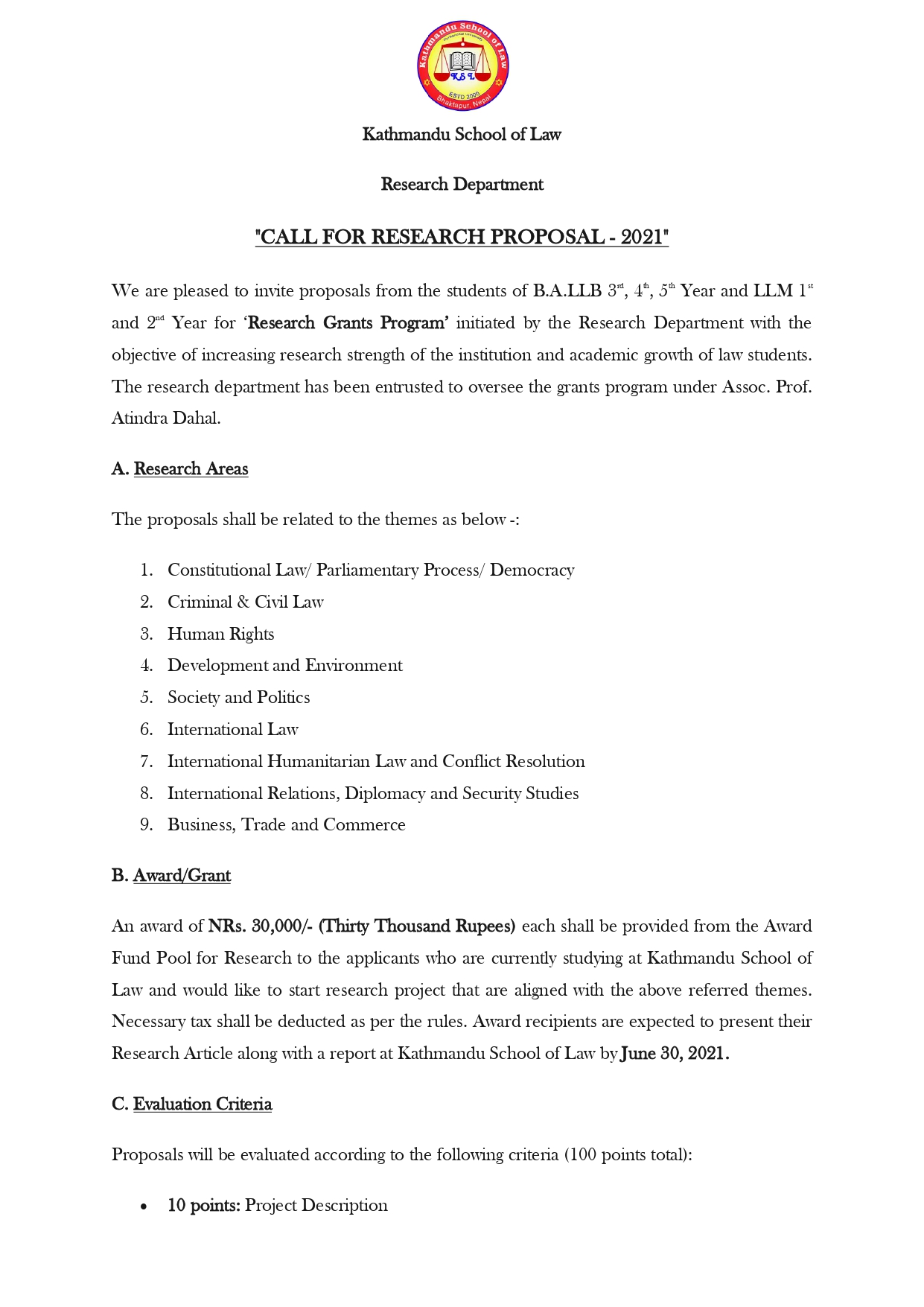 Research Grants Program 2021 - Call for Research Proposals for Students
